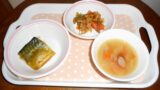 9月17日 この日の給食は、「豚肉の甘辛煮、トマトときゅうりのサラダ、白菜のすまし汁」でした。
